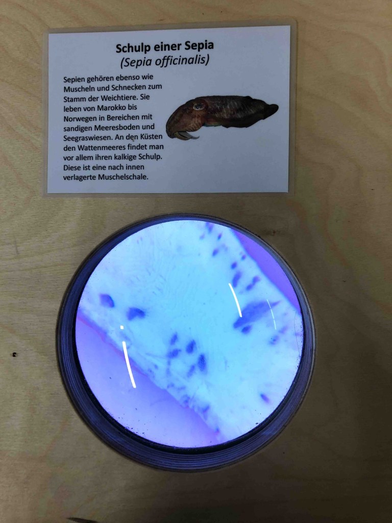 Ein Highlight hatte ich trotzdem: Endlich habe ich auch einmal gesehen, wie die Tiere aussehen, deren Panzer ich schon sehr oft am Strand gefunden habe. Nämlich der Schulp einer Sepia. Das sind Weichtiere, die auf dem Meeresboden oder den Seegraswiesen leben. Wieder was gelernt.