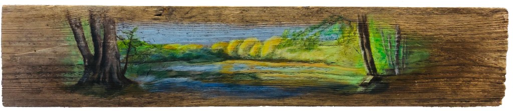 Begeistert sammle ich Materialien, auf denen ich malen kann. Holzbretter zum Beispiel. Ende letzten Jahres war ich mit dem Rad unterwegs. Und plötzlich sah ich so im Augenwinkel, dass dort etwas im Gestrüpp am Straßenrand lag, was ich wahrscheinlich gut gebrauchen kann. Ich drehte mit meinem Rad sofort, um in einer Extrarunde noch einen prüfenden Blick auf das Teil zu riskieren. Manchmal ist das dann auch einfach nicht das, was ich dachte, gesehen zu haben. Dann lass ich es natürlich liegen.