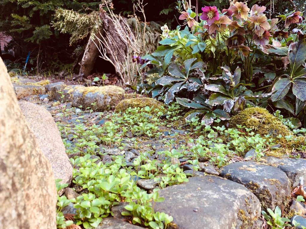 Sie wachsen einfach teppichartig in den Wegen. Und ich ziehe sie dann Pflänzchen für Pflänzchen wieder raus. Aber sie landen natürlich nicht in der Biotonne! Nein. Das geht nicht. Ich pflanze sie büschelweise in Blumentöpfe, weil es immer jemanden gibt, der sie mir abnimmt.