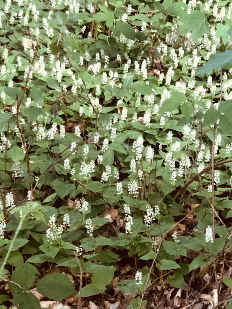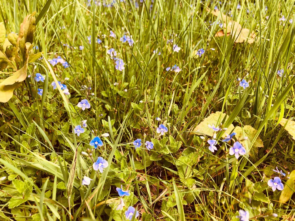 S. und ich sind dann losmarschiert. Einmal durch den Rosengarten oder zumindest einen der Rundwege entlang, die es dort gibt. Die Beschilderung der Wege haben wir leider nicht gefunden. Nur ein paar Schilder, die als „Pferdeweg“ ausgewiesen wurden. Also sind wir erstmal diesem Weg gefolgt. Durch schöne Waldlichtungen, an wunderbaren, zarten Blütenteppichen vorbei.
