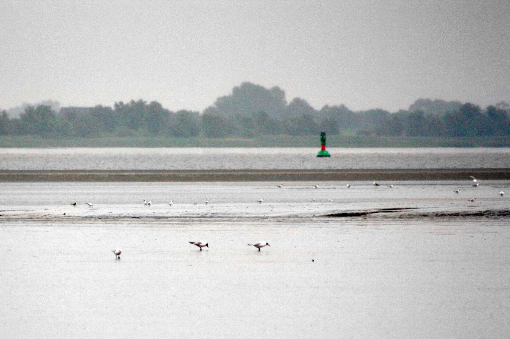 Hinterm Deich in Kehdingen, Regen ohne Pause, keine Elbe zu sehen, viele Spuren im Watt und der Mann vom NABU versorgt uns mit Wissenswertem …