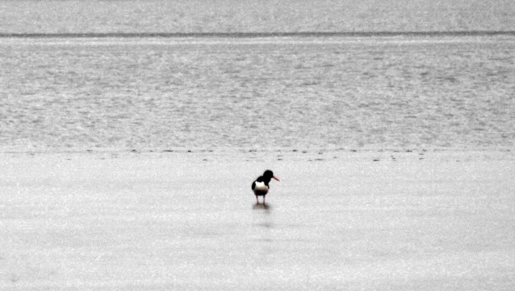Denn im Watt weiter draußen suchen Austernfischer nach Nahrung und werden scheinbar auch fündig.
