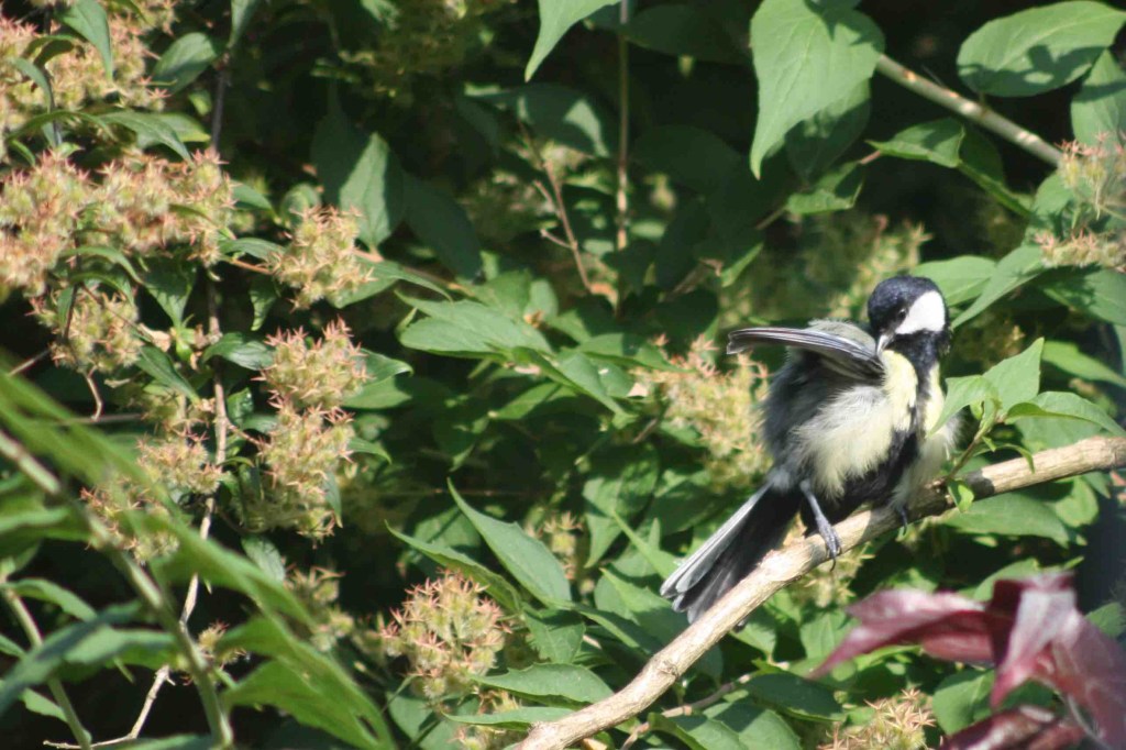 Diese kleine Meise meint es ernst. Immer schön sauber bleiben unter den Flügeln …