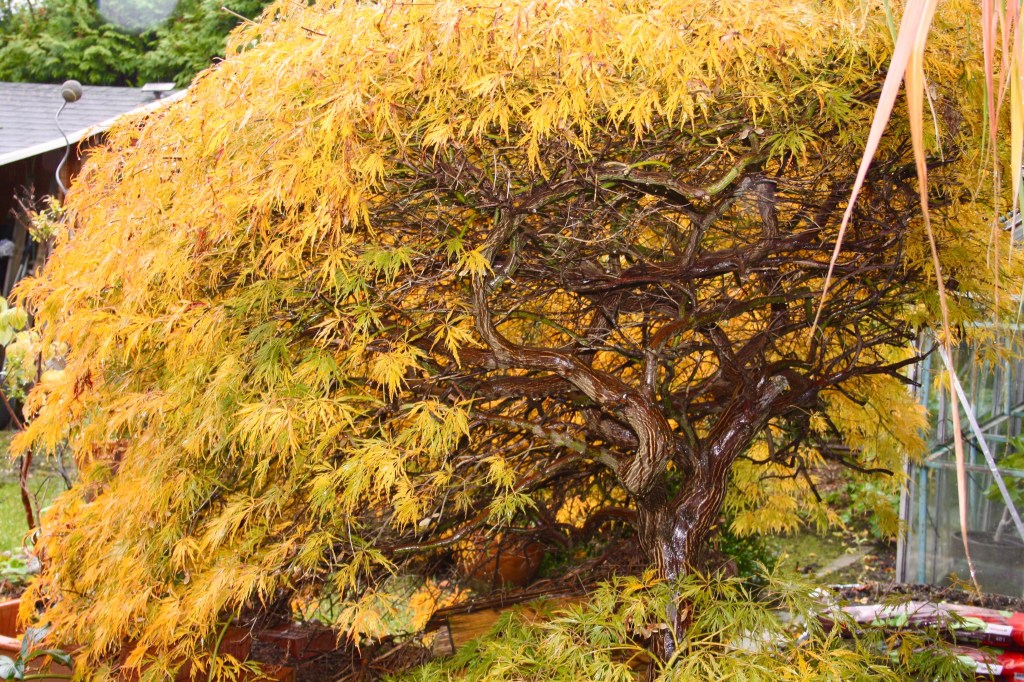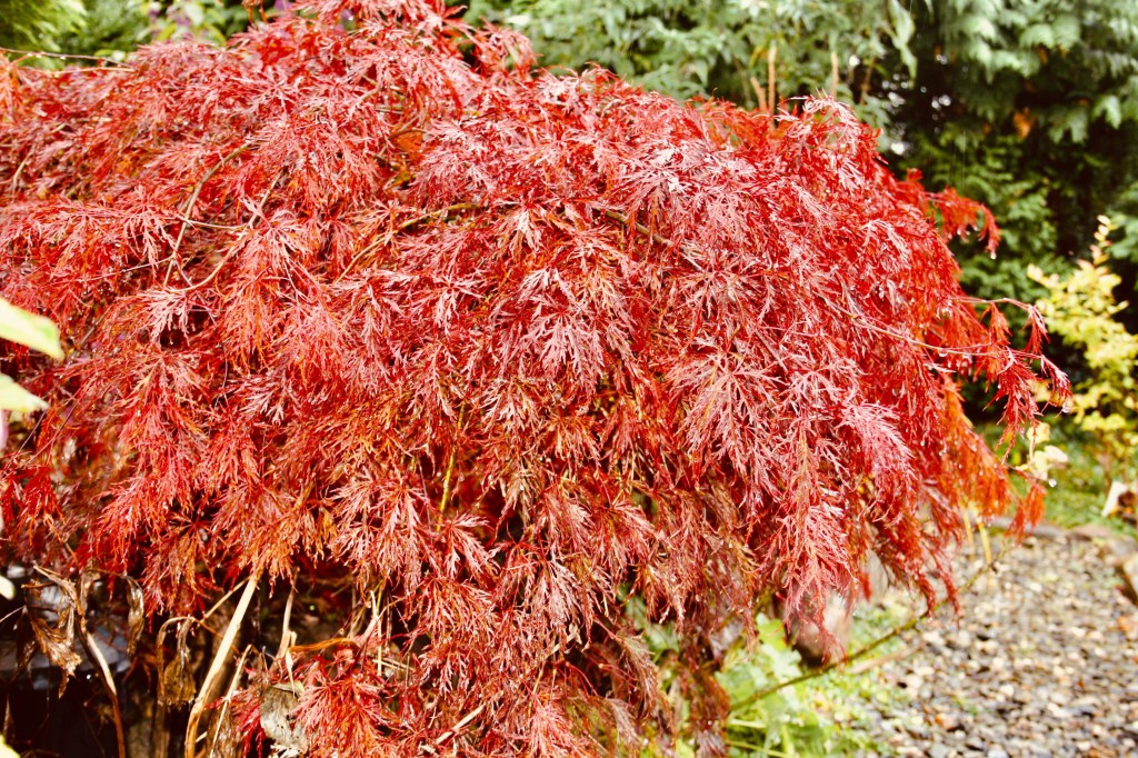 Trotz Regen bin ich gestern mit meiner Kamera einmal kurz durch den Garten gestreift. Mein Garten ist klein, eigentlich gibt es da nicht so viel zu sehen. Aber als ich die beiden Schlitzahorne gesehen habe, musste ich auf den Auslöser drücken.