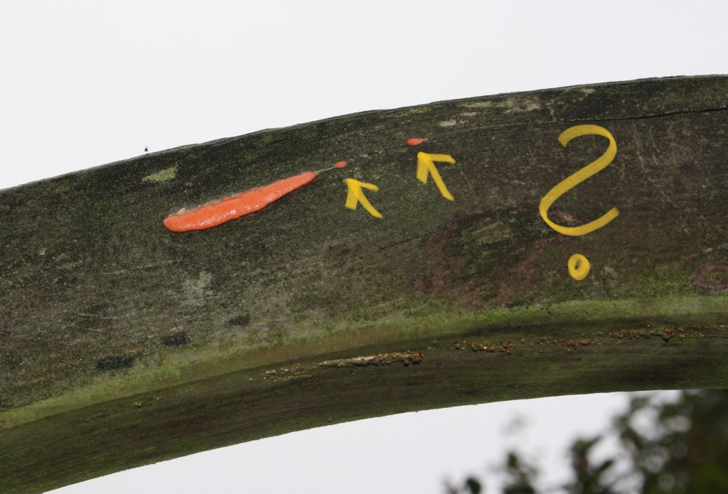 Was ich gestern ebenfalls im Garten an dem alten Rosenbogen entdeckt habe, ist eine grell-orange schleimige Spur??? Habe bisher keine Idee, was das sein könnte. Es bewegt sich sehr langsam vorwärts und hinterlässt kleine orange Haufen. Zuerst dachte ich an eine Raupe, aber unsere BestimmungsApp konnte das Rätsel nicht lösen.