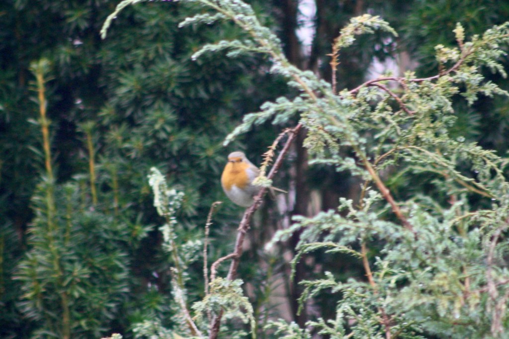 Ausschau halten ist für das Rotkehlchen besonders wichtig. Es ist ein Bodensucher und sammelt meistens die auf dem Boden liegenden Reste auf. Ihm ist hoffentlich nicht entgangen, dass dieser Garten auch von Katzen durchstreift wird. Vor einiger Zeit musste ich leider live und in Farbe beobachten, wie das Geschehen „Fressen und gefressen werden“ hier seinen Lauf nahm. Ich berichtete bereits im Artikel vom 1. Januar 2024.
