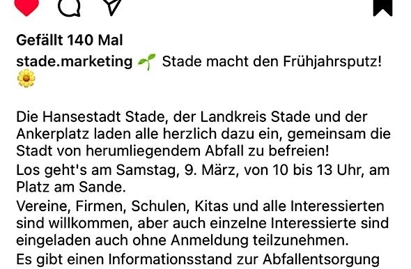 Unter diesem Motto veranstaltete heute die Stadt Stade, der Landkreis und der Ankerplatz in Stade eine Aktion gegen „unbeliebte Naturbewohner“ – sprich Müll der in der Natur natürlich nichts zu suchen hat. Stade.Marketing hat auf Instagram zur Beteiligung aufgerufen…