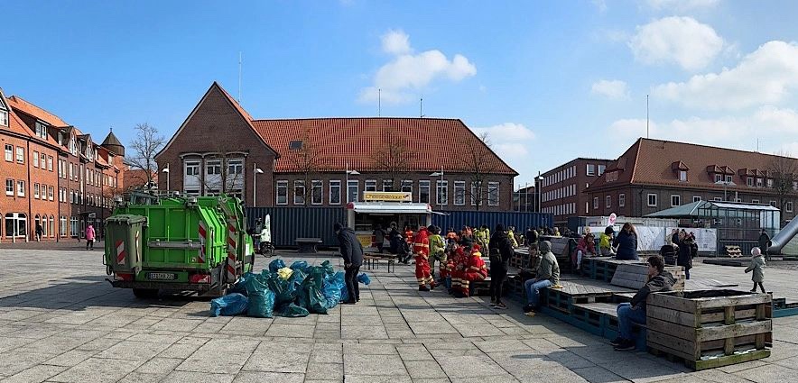 Letztendlich ist Stade jetzt erst einmal sauberer. Alle Beteiligten haben ihren gesammelten Müll auf dem Platz am Sande zusammengetragen. Da ist ganz schön was zusammen gekommen.