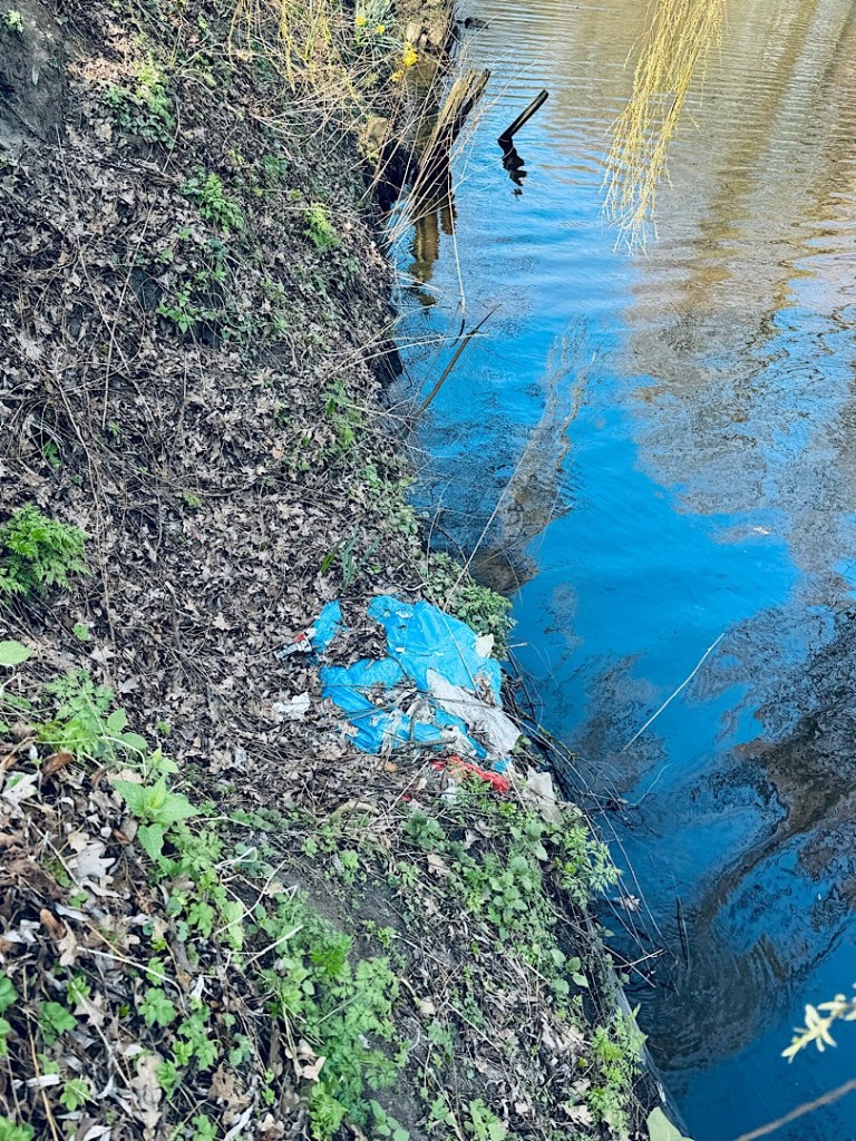 Am Ufer des Buggrabens entdeckte ich einen vollen blauen Müllsack, der dort schon geraume Zeit liegen musste. Er war so schwer und unhandlich, dass ich die Stadtreinigung zu Hilfe rufen musste. Die Profis kamen auch prompt und übernahmen diese Aufgabe.