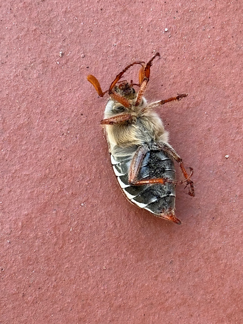 In den letzten Wochen bin ich schon mehrmals auf Maikäfer mitten auf Fußwegen oder Asphalt gestoßen. Ich frage mich, ob sie die Orientierung verlieren und warum sie nicht einfach wegfliegen? Wenn Radfahrer unterwegs sind, hätten diese keine Chance auszuweichen. Also setze ich sie immer in den nächsten grünen Garten und hoffe, das sie sich berappeln.