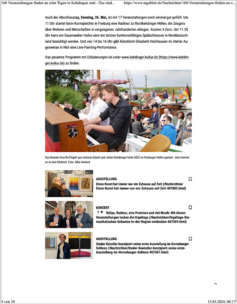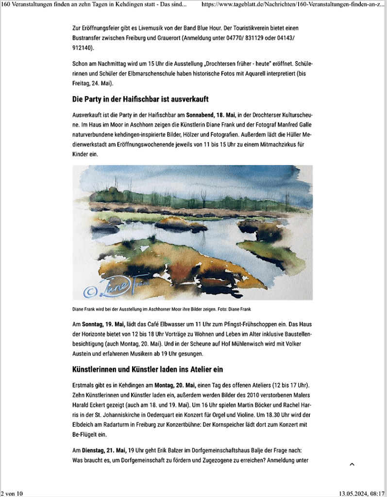 Von mehreren Seiten bekomme ich Nachrichten, dass eines meiner Aquarelle es gestern ins Stader Tageblatt geschafft hat. Schon verrückt, dass meine Hobbykunst es in den Lokalteil geschafft hat. Sicher wären einige andere Nicht-Hobby-Künstler auch glücklich darüber gewesen. Aber nun freue ich mich sehr über die Veröffentlichung!