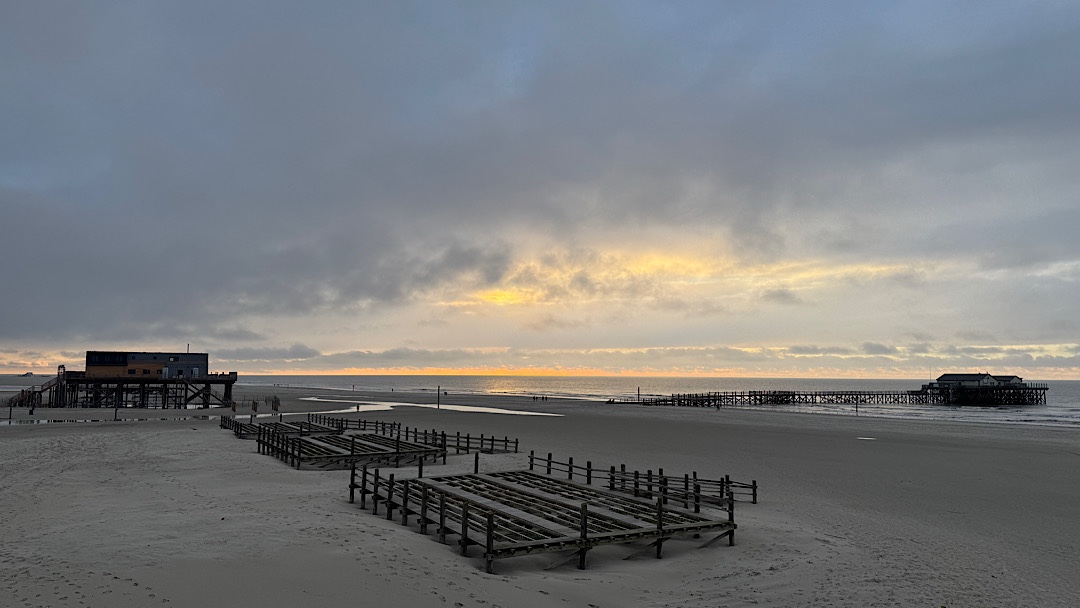 Genau so mag ich die Nordsee und den Strand – menschenleer! Vereinzelt gingen ein paar andere Urlauber in ziemlicher Entfernung spazieren, aber die Massen sind längst alle abgereist. Zumindest verteilten sich die paar Menschen auf die vielen Kilometer Strand sehr spärlich. Auch im Hotel war alles sehr entspannt. Parkplätze überall schnell zu finden. Die Angestellten in den Geschäften und beim Bäcker hatten fast zu wenig zu tun. So äußerte sich zumindest die Bäckereifachverkäuferin, die es lieber belebter mag.