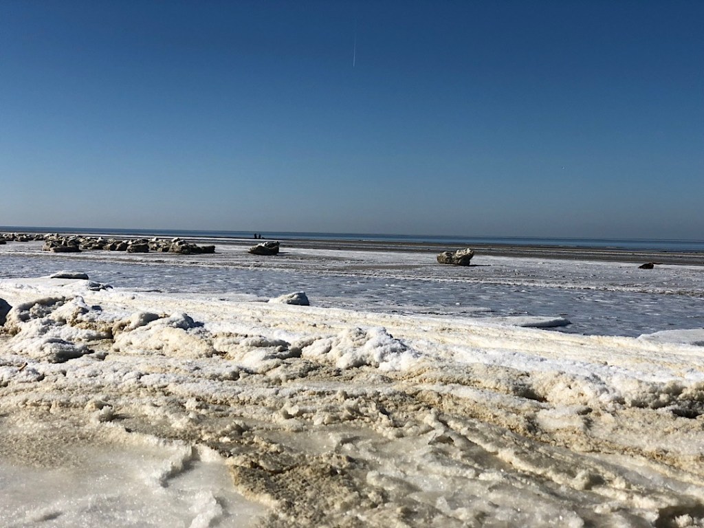 Nordsee ist immer schön – mit oder ohne Schnee. Geplant war allerdings mal wieder einen langen Strandspaziergang im Schneegestöber zu machen und eventuell sogar über am Strand liegende Eisschollen zu hüpfen. Das gab es tatsächlich schon mal in 2018 siehe Foto:
