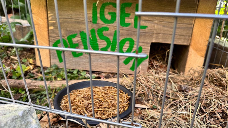 Zwei Näpfe – einer mit frischem Wasser und der andere mit getrocknetem Futter (Mehlwurm-/Soldatenfliegenlarven – Mischung) befüllt. So brauchen es Igel laut Igel-Experten. Denn viele der Igel sind bereits einmal dem Hungertod von der Schippe gehüpft. Sie landeten dort, wo sie liebevoll aufgepäppelt wurden.