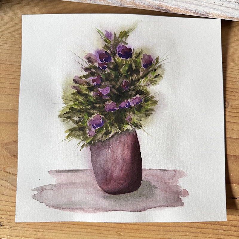 Hier meine weiteren Wochenaufgaben – die Landschaften und zum Schluss ein windschiefer Blumenstrauß.