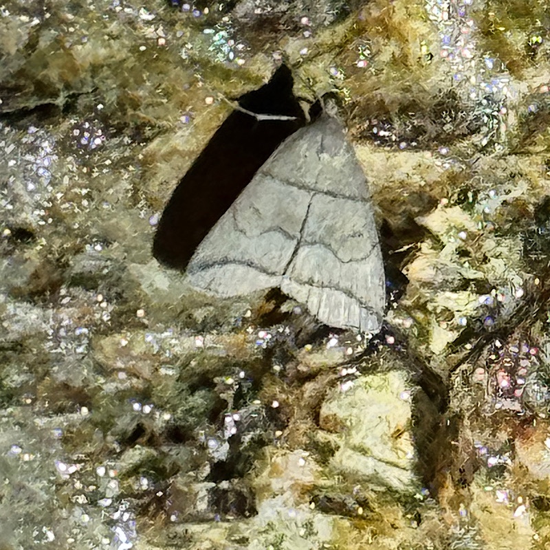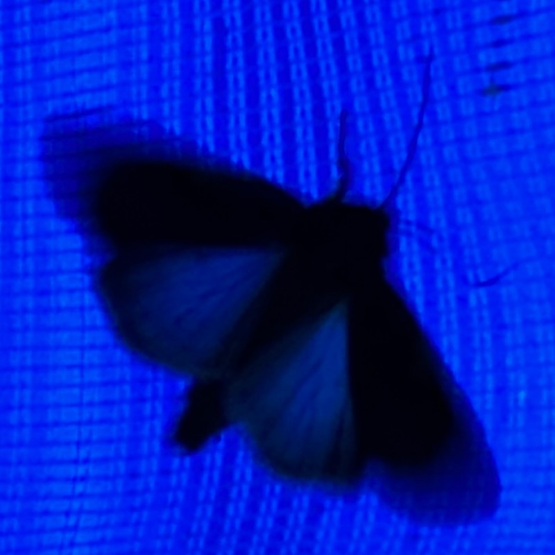Das ist ein Schlauch aus Netzstoff mit innenliegender ultravioletter Beleuchtung. Auf dem hellen Netzstoff sind dann die Falter gelandet und wir haben sie bestimmt und fotografiert. Da kamen einige zusammen: