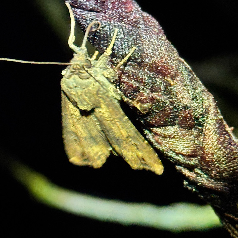 Dort wurden Bäume präpariert, um Falter anzulocken. Das klappte schon mal gut, denn es dauerte nicht lange, bis sich einige Falter an den präparierten Stellen niederließen. Wir fotografierten die Falter. Mit Taschenlampen bzw. Stirnlampen leuchteten wir und zückten dann die Mobiltelefone. Die Experten hatten natürlich Digitalkameras dabei. Für mich langte das Telefon. Die ersten Falter waren folgende: