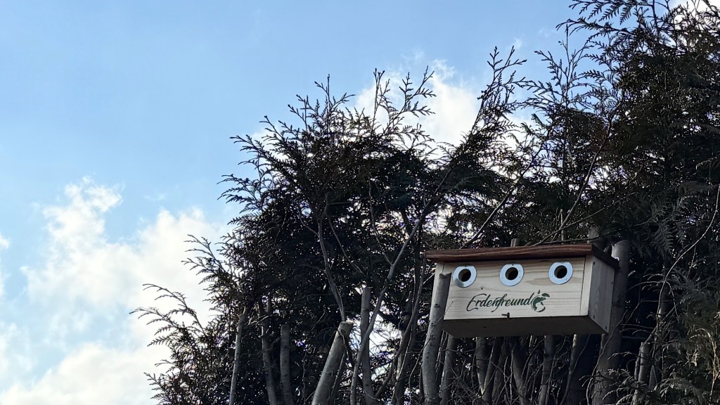 Allerdings wurde der Kasten erst einmal von den kleinen Blaumeisen begutachtet. Ganz links hat sie angefangen jedes Loch zu begutachten. Eins nach dem anderen. Sie sind eigentlich gar keine Großfamilien-Brüter. Für diese Einzelgänger haben wir auch einzelne Nistkästen aufgehängt. Aber wo etwas Neues installiert wird, da sind die neugierigen kleinen Meisen anzutreffen. Ich erinnere an mein Insektenhotel, wo ich ein altes Vogelhäuschen integriert hatte – nicht um Vögel einziehen zu lassen, sondern für Käfer oder Spinnen oder sonst was….