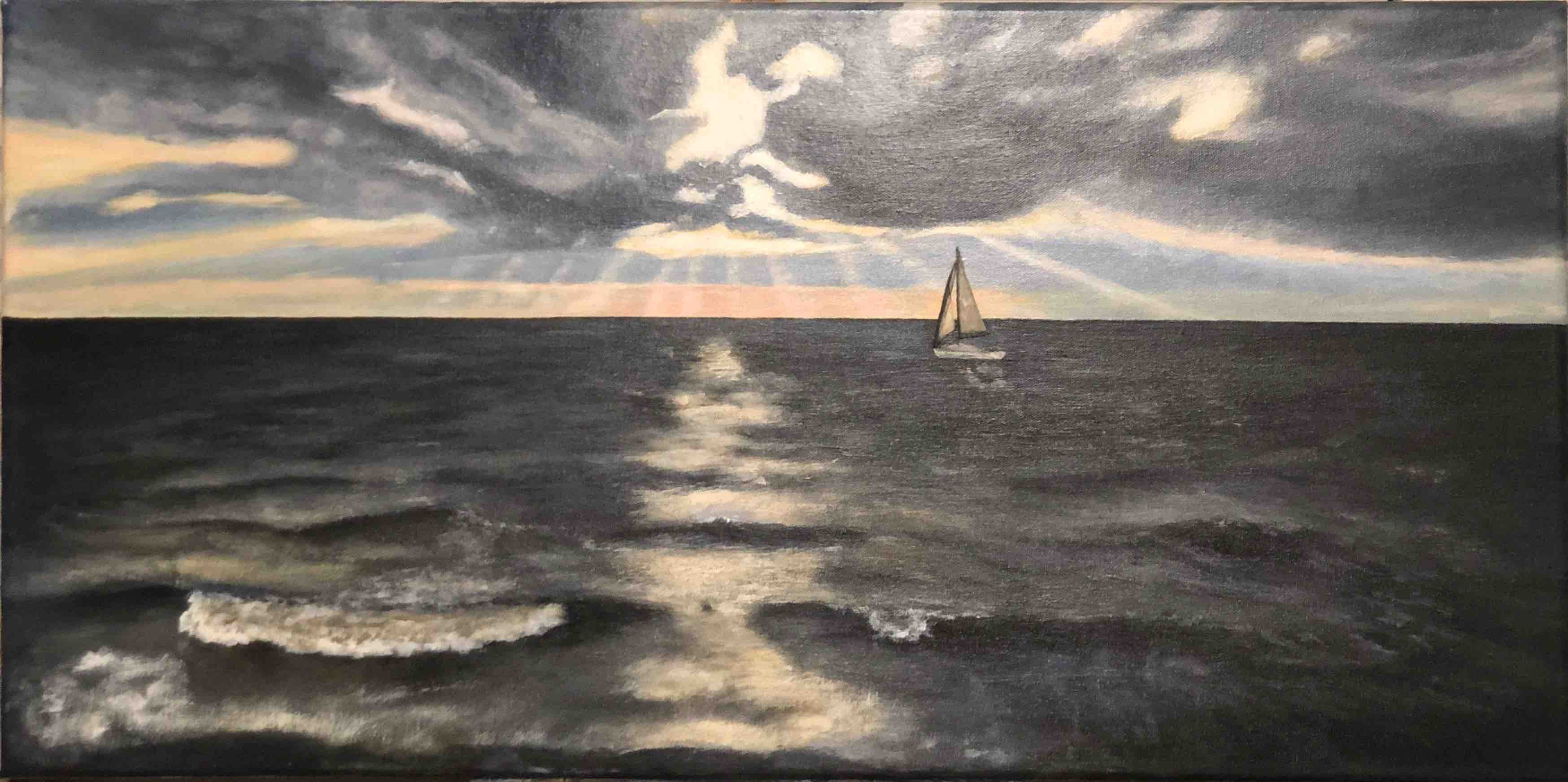 Am Horizont verschmilzt die Sonne mit den Wellen der Nordsee. In diesem magischen Augenblick wird das Endlose spürbar und die Schönheit der Natur berührt unsere Seele. Ein Sonnenuntergang verewigt auf einem Kunstwerk ist eine Liebeserklärung der Natur an unsere Sinne.
